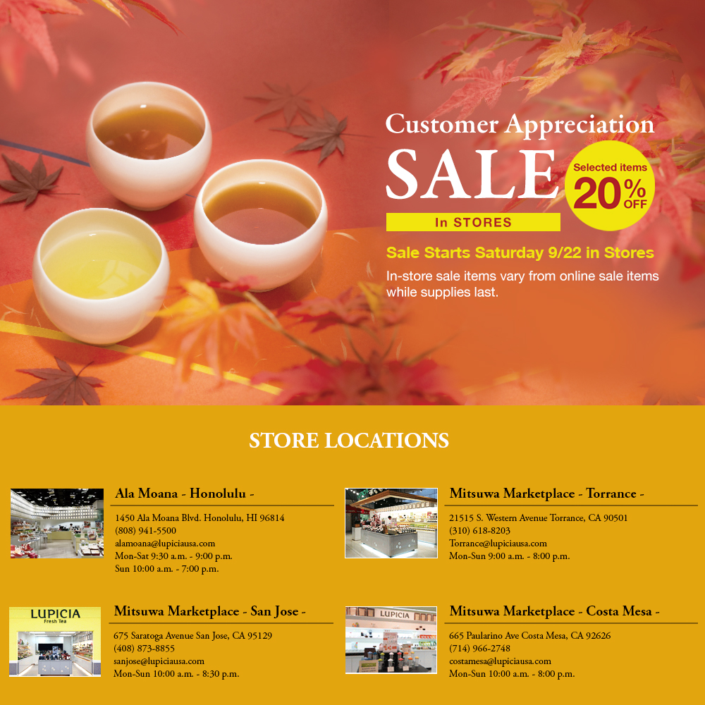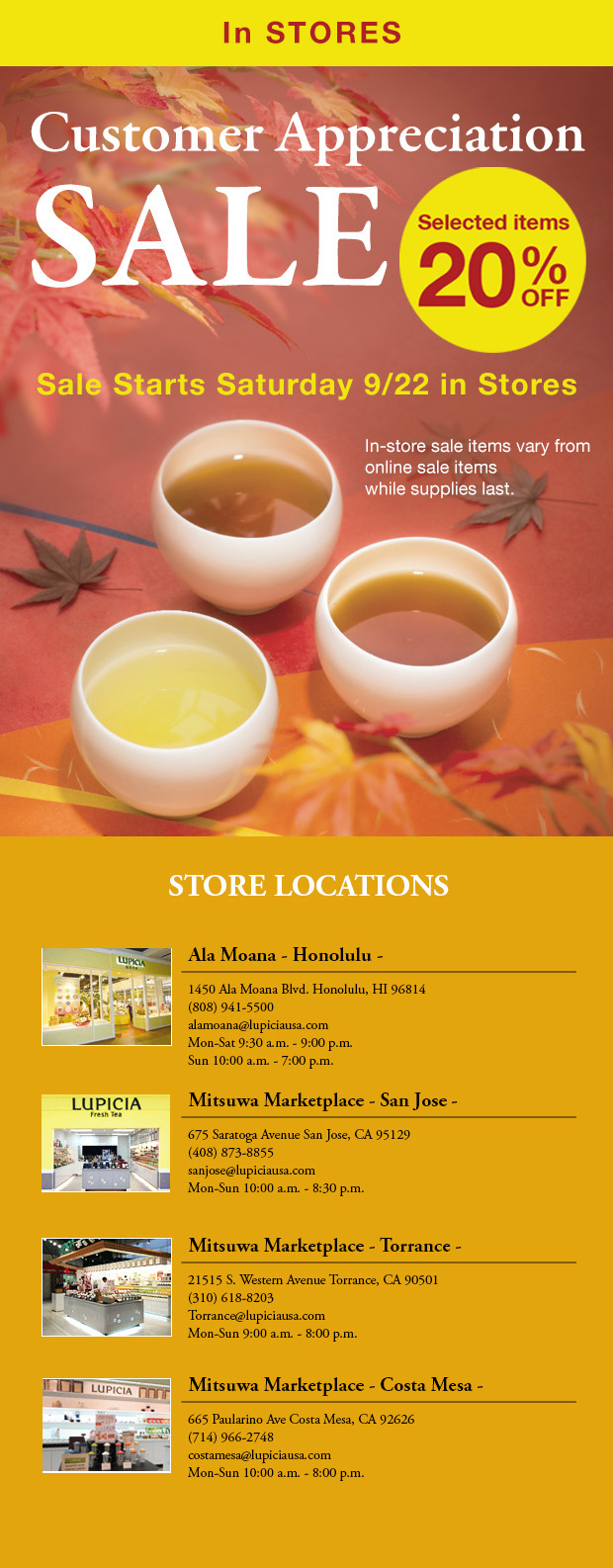 In Stores Customer Appreciation SALE starts 9/21 Sat.