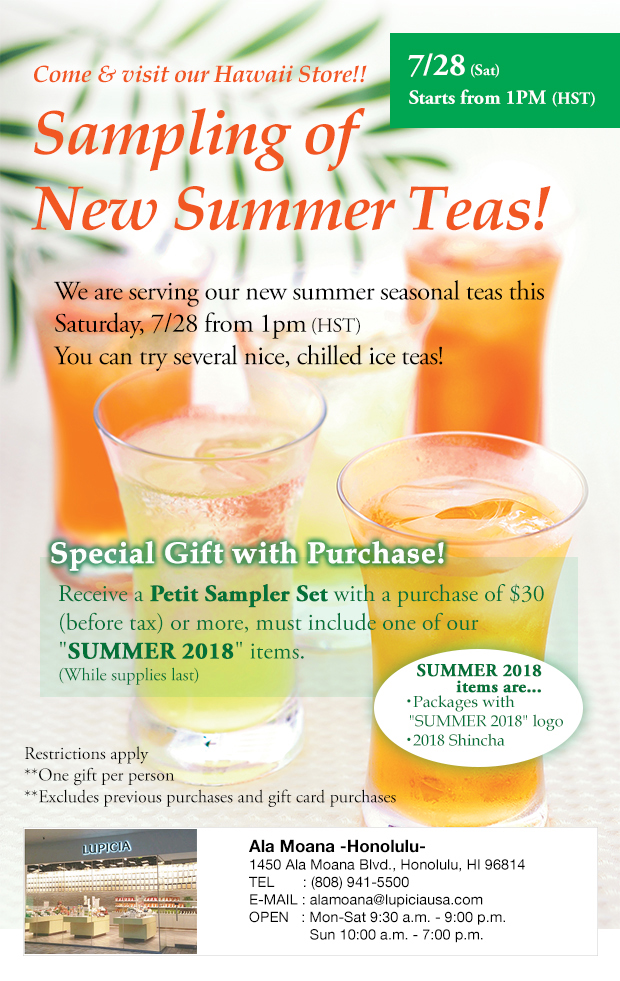 Come & visit our Hawaii Store for sampling of new summer teas!